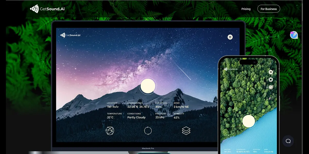 GetSound.ai algorithm creates ambient music that responds to your current surroundings, such as the weather conditions, location, or time of day all being done in real-time. That means that every sound you hear is unique to you and this specific moment in time.