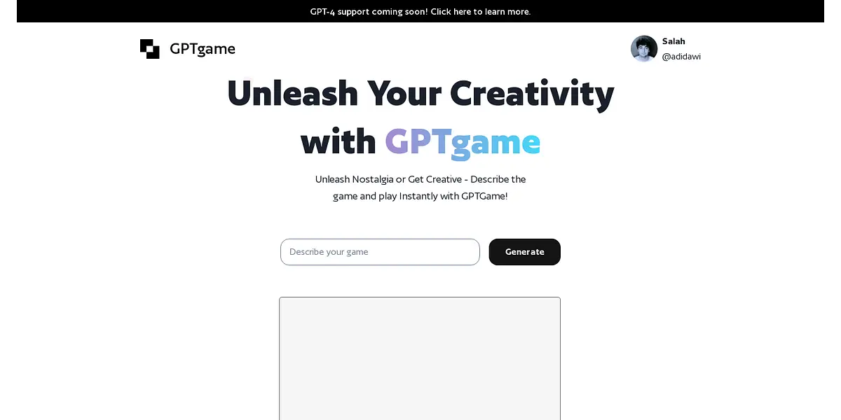 Unleash Your Creativity with GPTgame - Unlock New Levels of Imagination!