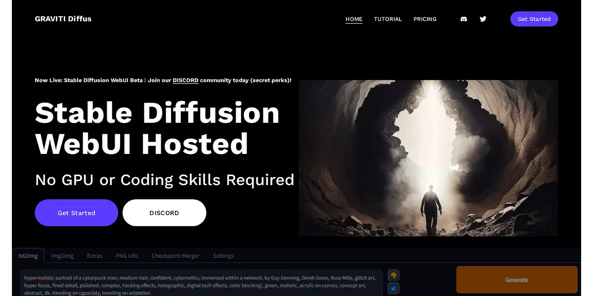 Get started with community-favorite Stable Diffusion WebUI in seconds. No GPU or coding skills required. Join our Discord community for secret perks, tutorials, and more.
