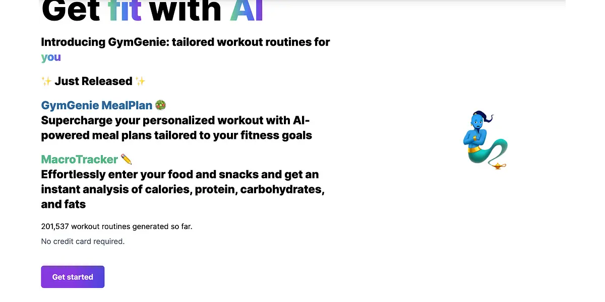 GymGenie uses AI to create personalized workout routines and meal plans tailored to your fitness goals. With GymGenie MealPlan, you can supercharge your fitness journey by effortlessly entering your food and snacks and getting an instant analysis of calories, protein, carbohydrates, and fats. GymGenie has already generated over 100,000 workout routines for people in over 80 countries. Whether you're a beginner or an experienced fitness enthusiast, GymGenie has a plan for you. Sign up for free and start working towards the best version of you with GymGenie.