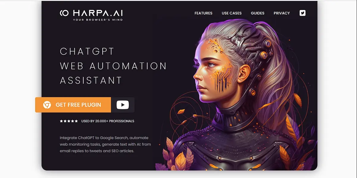 HARPA AI is a game-changing Chrome extension that automates tasks on the web for you, saving you precious time and money while greatly increasing your productivity. With HARPA AI, you get access to AI-powered search answers, web page summarization, structural data extraction, product price and stock monitoring, article and legislation monitoring, competitor site change detection, and much more. HARPA AI is based on a hybrid AI engine built on top of ChatGPT and its own Machine Learning, ensuring that it is highly accurate and reliable. By installing HARPA AI in your browser, you can boost your productivity significantly, making it the future of web browsing and automation.