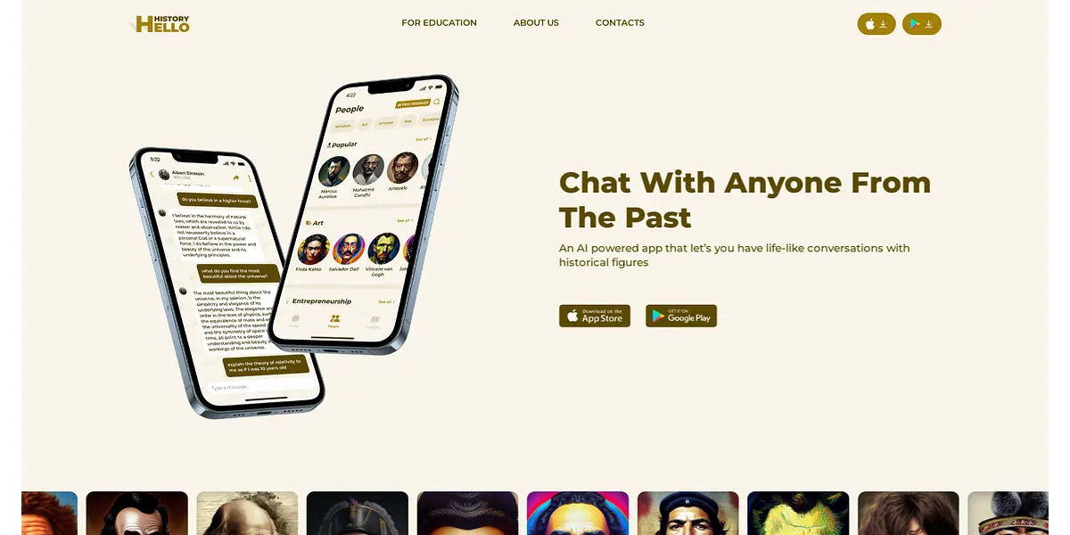 Hello History is an innovative AI-powered app that lets users step back in time and have life-like conversations with some of the most influential people in history. With state-of-the-art technology and a growing list of figures, Hello History brings history to life and offers a unique learning experience like no other.
