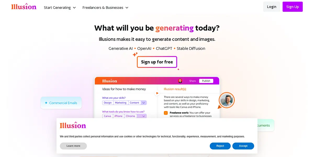 With Illusions' easy-to-use platform, users can generate high-quality content and images quickly and effortlessly. From generating full marketing plans to creating personalized fitness and nutrition plans, the possibilities are endless. Using Illusions' Generative AI can lead to increased productivity and outstanding accomplishments, while helping users stay ahead of the curve when it comes to creativity.