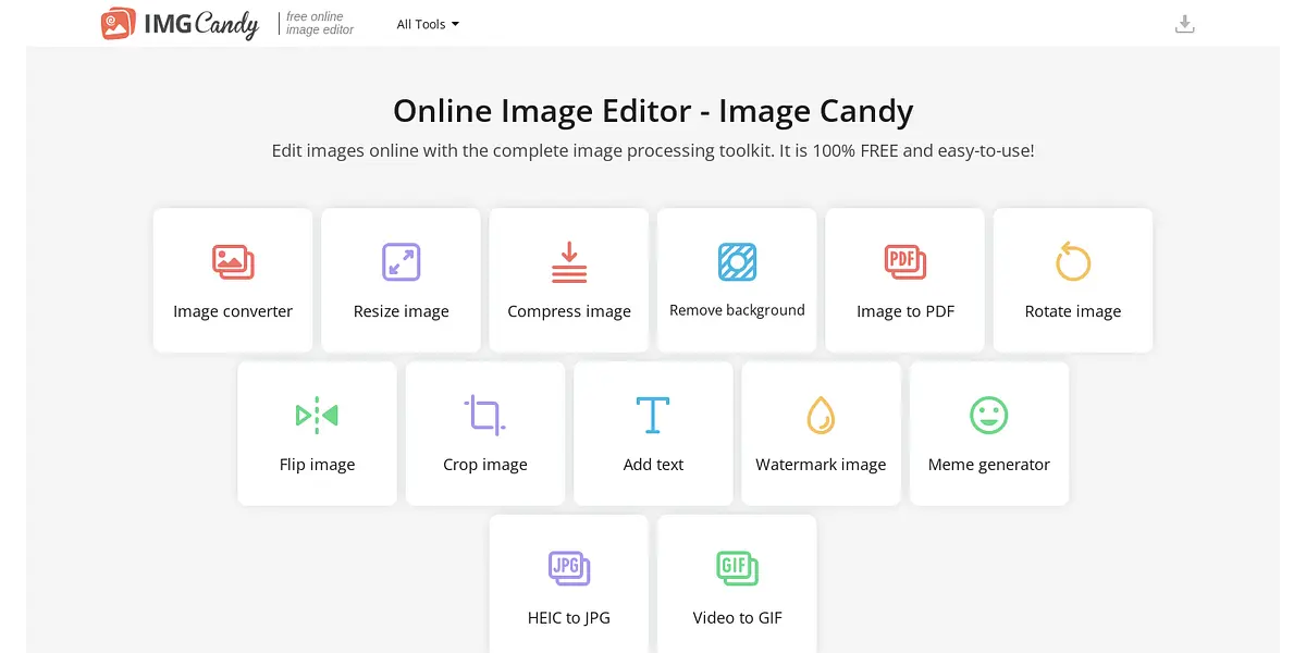 Enter Image Candy, a free online image editor that removes the complexity and expense of traditional image editing tools. With their platform, users can access a complete image processing toolkit with just a few clicks. Their easy-to-use interface makes it accessible to everyone, whether you're a seasoned graphic designer or a beginner looking to add some pizzazz to your photos.