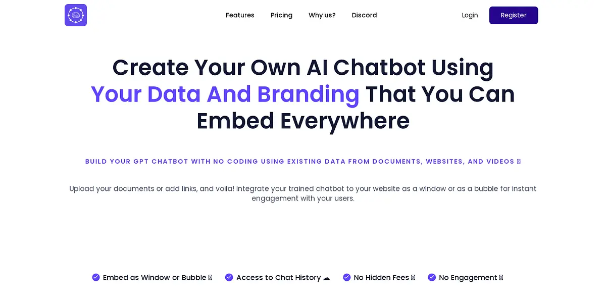 InsertChatGPT is a leading AI chatbot platform that lets you create and customize your own chatbots with your brand and pre-defined behaviors. Our cloud-based chatbot builder allows businesses to integrate their existing data from documents, websites, and videos with no coding required. With our user-friendly platform, you can train your chatbots on your existing data, and our latest GPT-3.5 Turbo model ensures that your chatbots respond with the highest level of accuracy, making it easier for you to transform your customer experience with intelligent chat.
