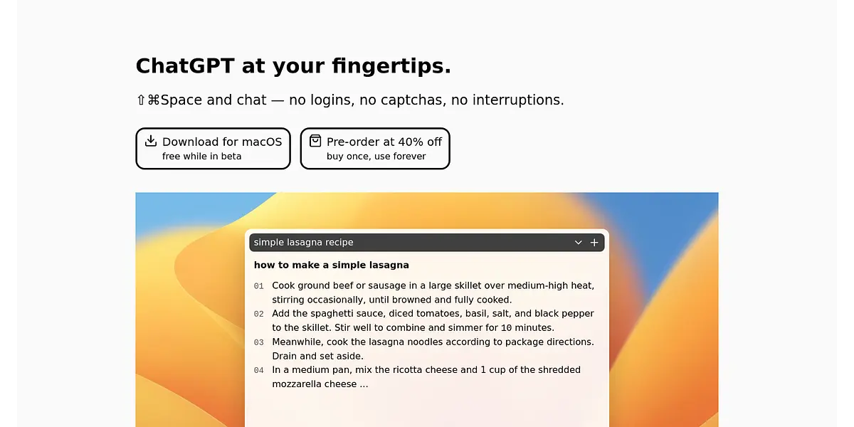 The platform has a beautiful and adaptive user interface that adopts to your system settings. Users can access ChatGPT on their macOS operating system through a simple download process. While in beta, the platform is available free of cost, but users can also pre-order a lifetime license for a discounted price of $29 instead of $49. This not only supports the development of the platform but also ensures the user gets all future updates for free.
