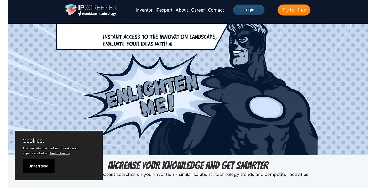 "Get AI-assisted patent searches with IPscreener and stay ahead in the innovation game. Validate your ideas, discover trends and competitors and collaborate more efficiently with your team. With over 20,000 cases successfully analysed and maximum security guaranteed, IPscreener is your go-to source for patent intelligence."