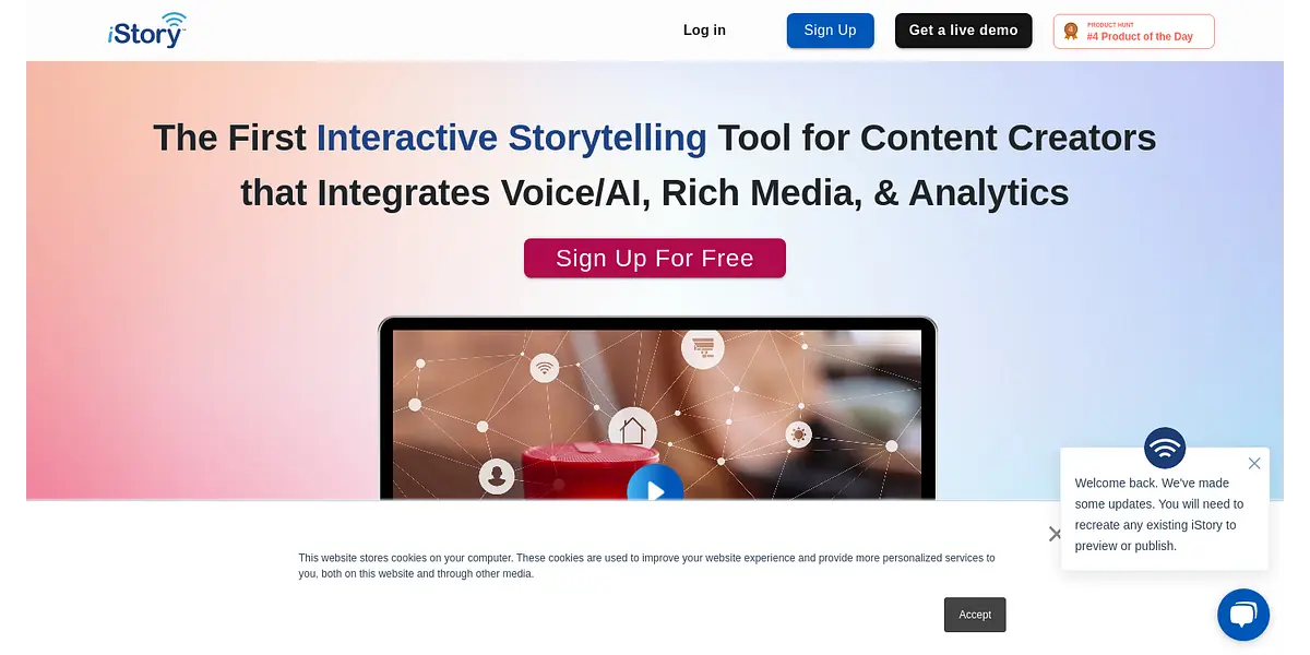 iStory is a revolutionary platform that introduces interactive storytelling for content creators. With iStory, creators can now engage their audience like never before. The platform integrates voice/AI, rich media, and analytics to help creators create unique experiences that are tailored for every individual. By allowing their audience to choose the path of their story, creators can break through the clutter of the digital ecosystem and deliver their message in a more compelling way.