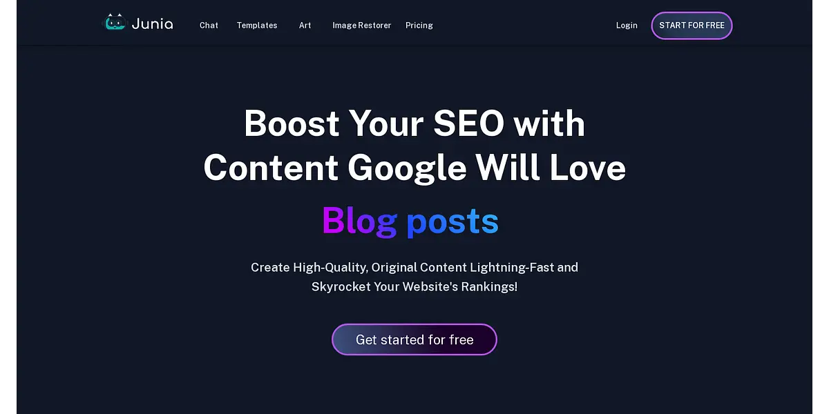Generate high-quality and SEO-optimized emails, blog posts, social media content, artwork, and more in seconds with Junia AI's Content Platform. Simplify your creative processes and elevate your content creation workflow for maximum efficiency. Try Junia AI for free today!