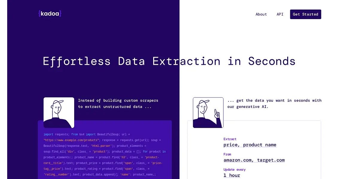 Extract Data Effortlessly with Kadoa's Generative AI.