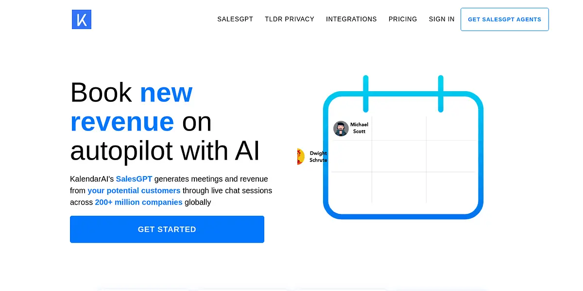 SalesGPT Agents is an AI-powered platform that helps businesses generate new revenue and book meetings on autopilot. With SalesGPT Agents, you’ll be able to engage potential customers through live chat sessions across over 200 million global companies. In just 45 days, you can set up your SalesGPT agents and start enjoying the benefits of automated lead generation and personalized outreach.