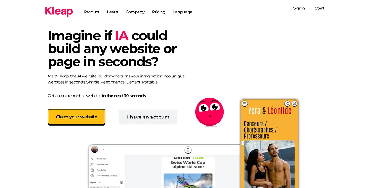 Experience the power of AI website building with Kleap.