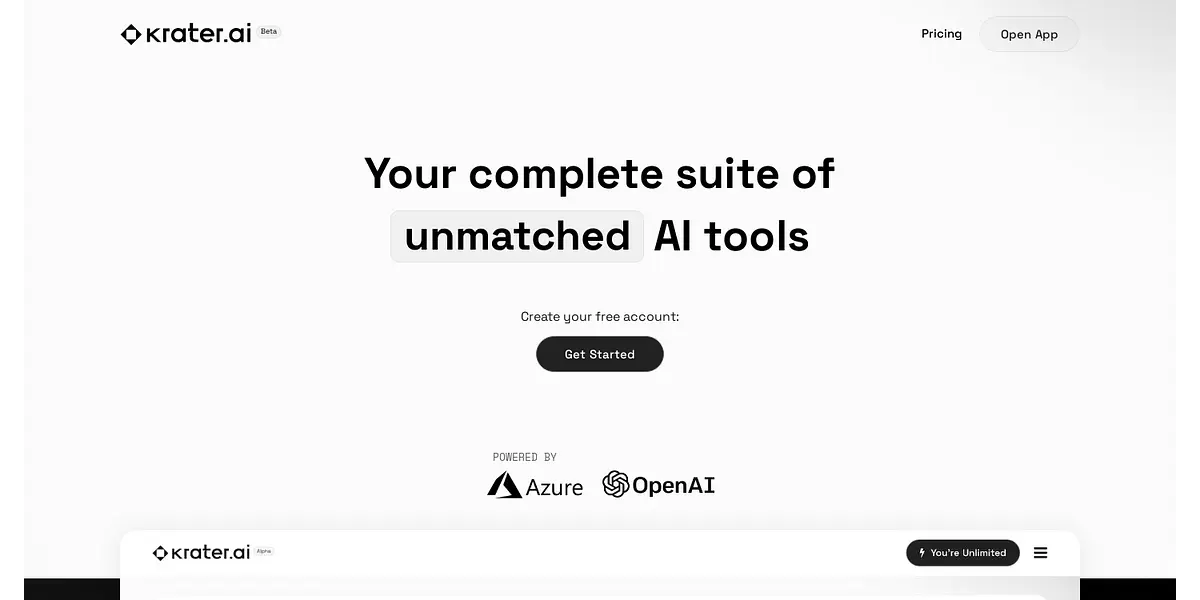 Krater.ai boasts an impressive set of features that enable you to go from 0 to 100 in a matter of seconds. Its top-grade tools are designed to deliver exceptional results while keeping the whole process simple and hassle-free. With Krater.ai, you get access to all major AI services, all in one location, and at a fraction of the cost of other AI tools in the market.