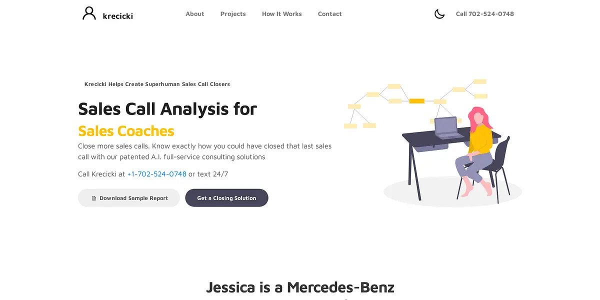 Krecicki's patented AI sales call analysis provides salespersons and coaches with personalized tips to improve their closing techniques. Unlock your sales potential with Krecicki's full-service consulting solution.