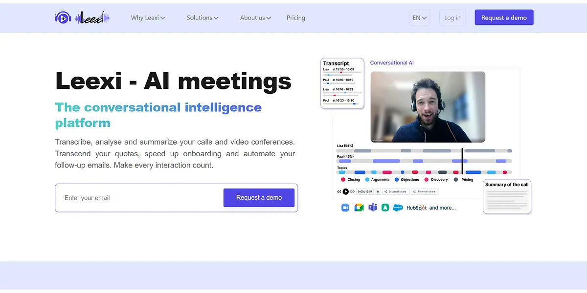 Leexi.ai is an artificial intelligence (AI) technology company that specializes in providing intelligent voice and language processing solutions to various industries, including finance, education, healthcare, and more. Their AI-powered solutions can help companies automate customer service, improve communication, and enhance business efficiency.