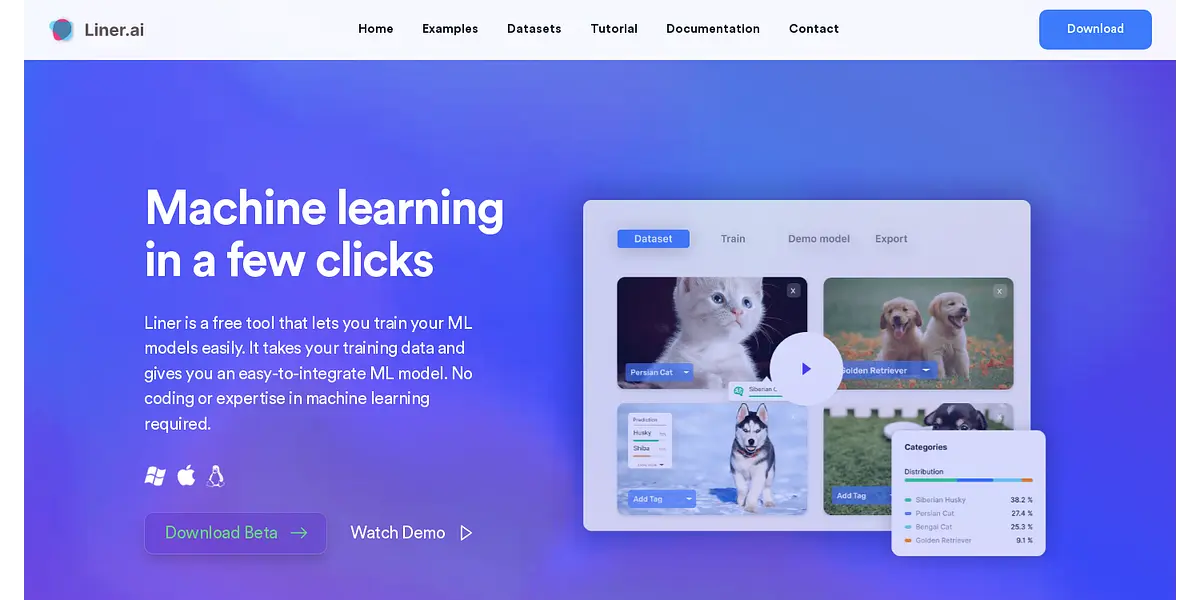 Liner is a free and easy-to-use tool that is optimized for speed and accuracy, letting users train their machine learning models without any experience in coding or machine learning. With just three easy steps, Liner guides users through importing their data, training their model, and deploying it to multiple platforms.