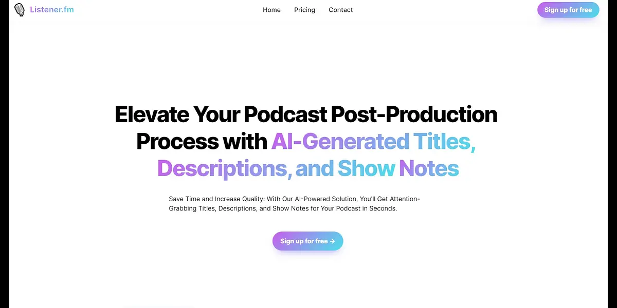 Are you tired of spending hours on post-production work for your podcast? Look no further than Listener.fm, the solution that will save you time and increase the quality of your show. With our AI-powered platform, you can effortlessly elevate your podcast with attention-grabbing titles, compelling descriptions, and engaging show notes tailored to each episode.