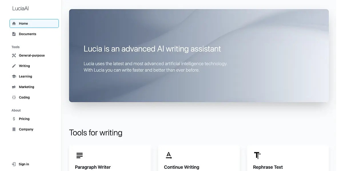 Have you ever struggled to find the right words, come up with a catchy headline, or write longer text that keeps your readers engaged? Meet LuciaAI, the advanced AI writing assistant that uses the latest and most advanced artificial intelligence technology to help you write faster and better than ever before. LuciaAI offers a comprehensive suite of easy-to-use writing tools to help you generate whole paragraphs, rephrase text, expand or shorten content, sound smarter, and even write new emails. And that's just the beginning! With LuciaAI, you can learn better by summarizing difficult text, explaining complex concepts in simple terms, and generating study notes, essay outlines, or exam questions on any topic. Boost your marketing game by generating unique business names, product descriptions, or blog post ideas, and let LuciaAI write catchy headlines or ad headlines for you. Plus, if you're a developer or coder, LuciaAI can help you generate code, fix bugs, clean up your code, or even convert code from one programming language to another. Say goodbye to writer's block and hello to LuciaAI – your new best writing assistant!