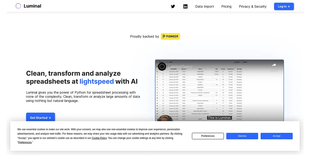 Looking for a dynamic way to process massive amounts of data without any headaches? Meet Luminal, the spreadsheet processing platform that utilizes natural language processing and Python to make data cleaning, transforming, and analysis easy and efficient. Luminal is specifically designed for those who want to get the job done as quickly as possible, without having to deal with the complexities of coding.