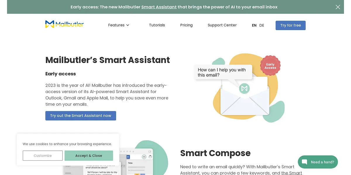 "Make email communication effortless with Mailbutler's AI-powered Smart Assistant!"