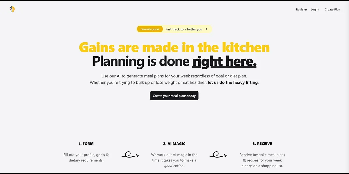 Simply fill out your profile, set your body goals and dietary requirements, and let our AI do the rest. Our service offers bespoke meal plans and recipes for your week, along with an interactive shopping list tailored to your dietary needs, food preferences, and body goals.