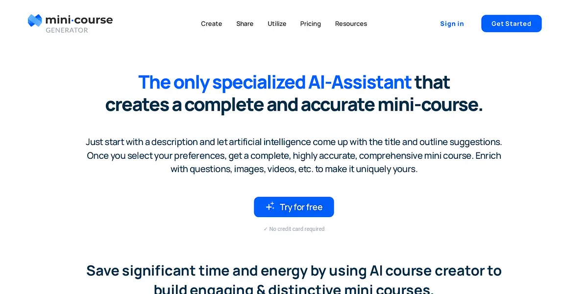 Get an accurate and complete mini-course with just a description using our AI-assistant. Add your unique revisions with questions, images, videos, customized completions, etc., for your purpose. Save significant time and energy by using AI course creator to build engaging & distinctive mini courses. Try for free ✓ No credit card required.