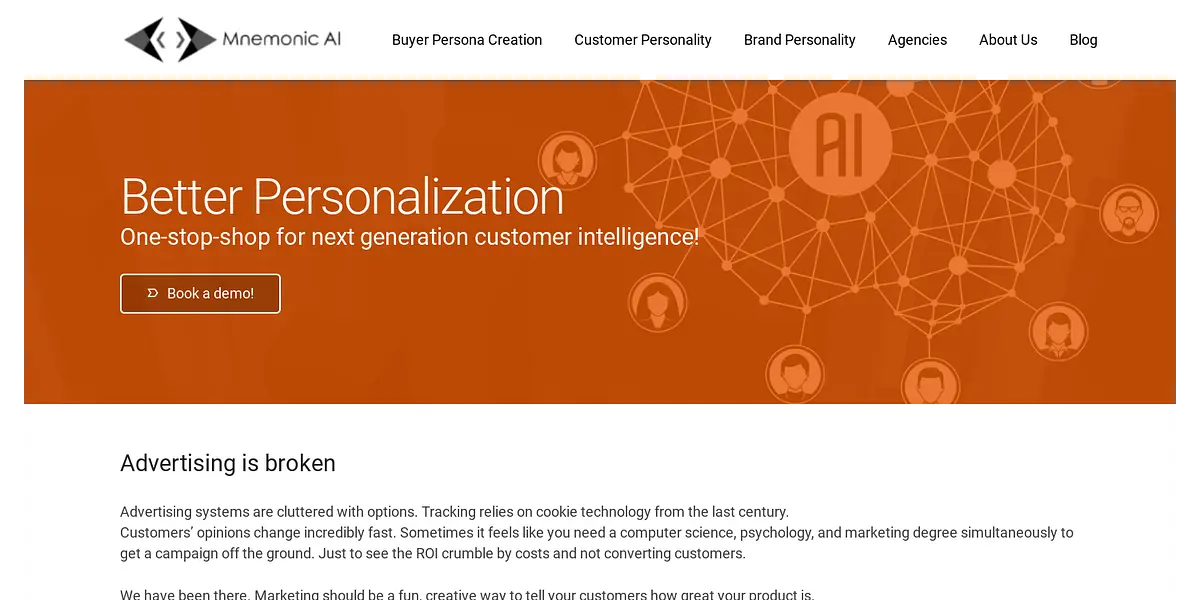The advertising industry is plagued with problems; advertising systems are cluttered with options, tracking relies on cookie technology from the last century, and customers' opinions change incredibly fast. Sometimes, it feels like you need a computer science, psychology, and marketing degree simultaneously to get a campaign off the ground, and just to see the ROI crumble by costs and not converting customers. But Mnemonic AI has been created to solve these problems and streamline the process.
