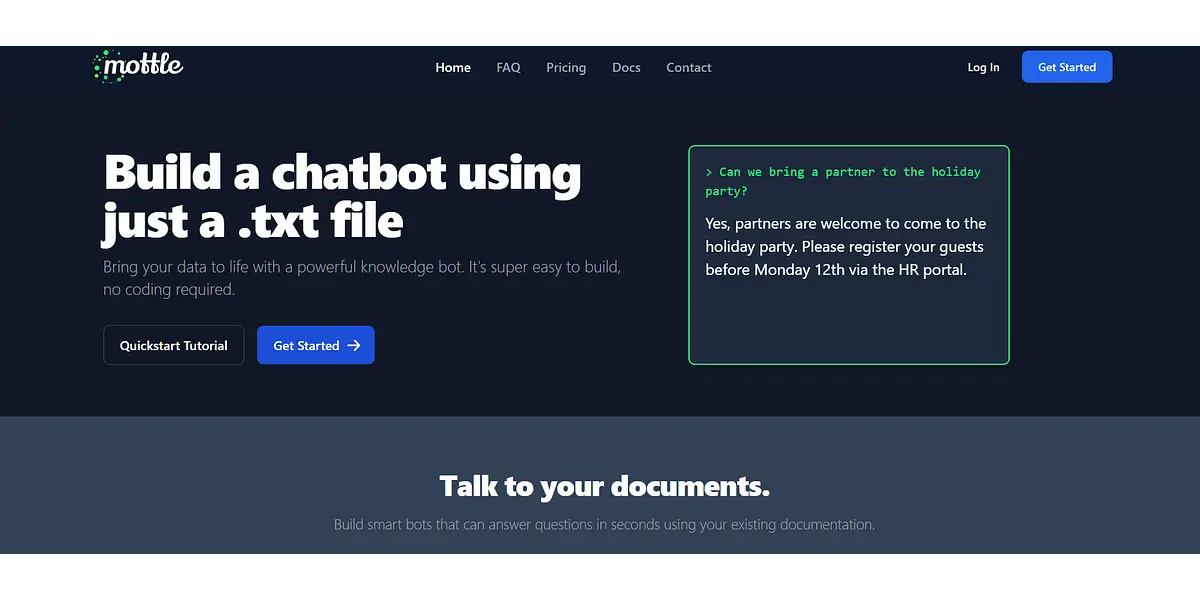Get started with just a few clicks. No complicated installation or hosting required. See exactly which documents were used to generate each answer. Uncover new ideas and insights by asking questions in everyday language with mottle.