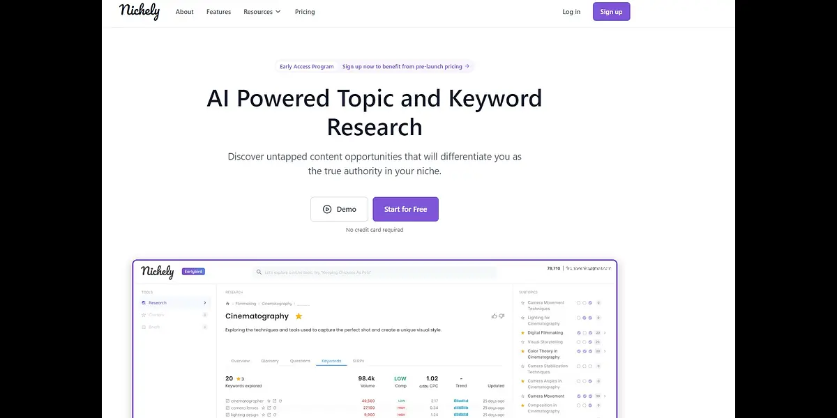 Discover Untapped Content Opportunities with AI-Powered Topic and Keyword Research Tool - Nichely