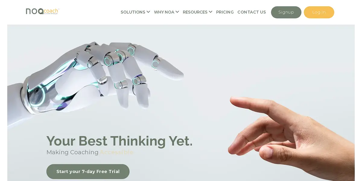 In short, with Noa Coach, you can unlock your full potential, reduce stress, increase productivity, and achieve your goals with customized coaching support tailored to you. Join a community of like-minded individuals, and start your 7-day free trial today.