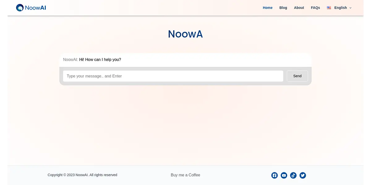 "Experience the future of AI chatbots with NoowAI. Our cutting-edge technology provides seamless and personalized interactions that revolutionize the way you communicate with your customers. Get ahead of the game and choose NoowAI for your business today."