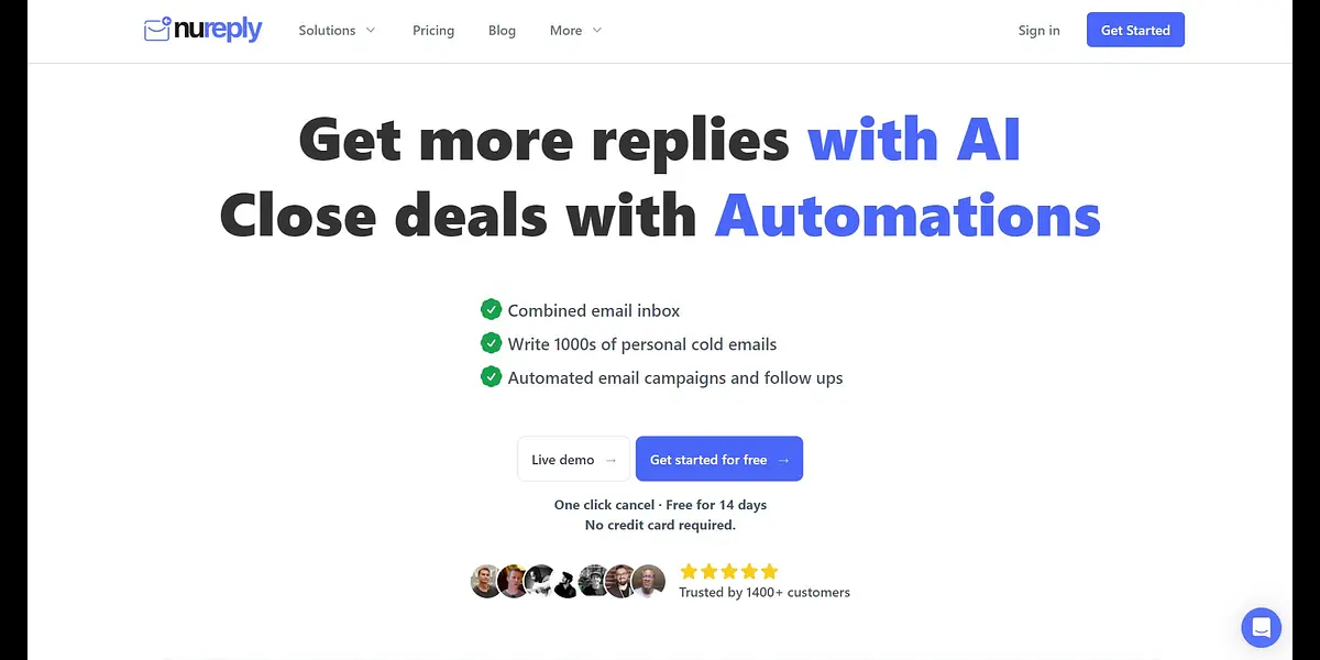 Nureply is an AI-powered cold email software that offers the best of both worlds – human and artificial intelligence. With Nureply, you can write personalized cold emails in seconds, automate your campaigns, and get more replies. Trusted by over 1400 customers, Nureply is the perfect solution for anyone struggling to fill their sales pipeline.