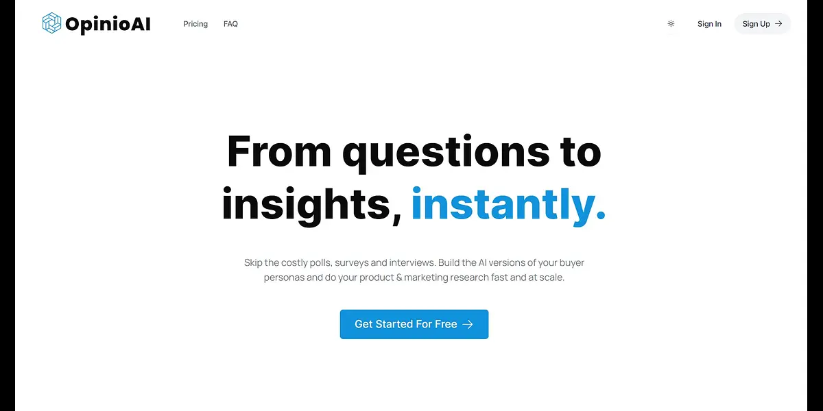 OpinioAI, the AI research platform, helps you source relevant insights, data, and opinions in a simple, fast, and scalable way without relying on polls or surveys. Build your buyer personas, evaluate the content, and kickstart your marketing research with AI – all with OpinioAI!