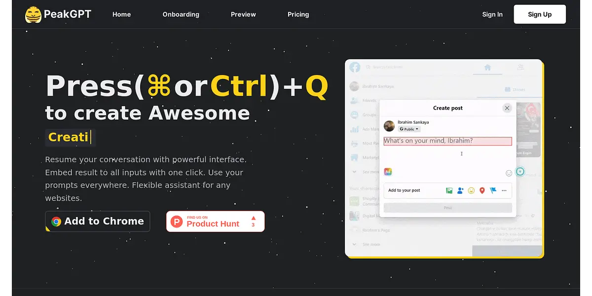 PeakGPT is a revolutionary productivity tool that combines the power of OpenAI's ChatGPT with advanced browser extension experience to assist you in all your online workspaces. It is an AI personal assistant that simplifies your work and saves you time with its efficient features.