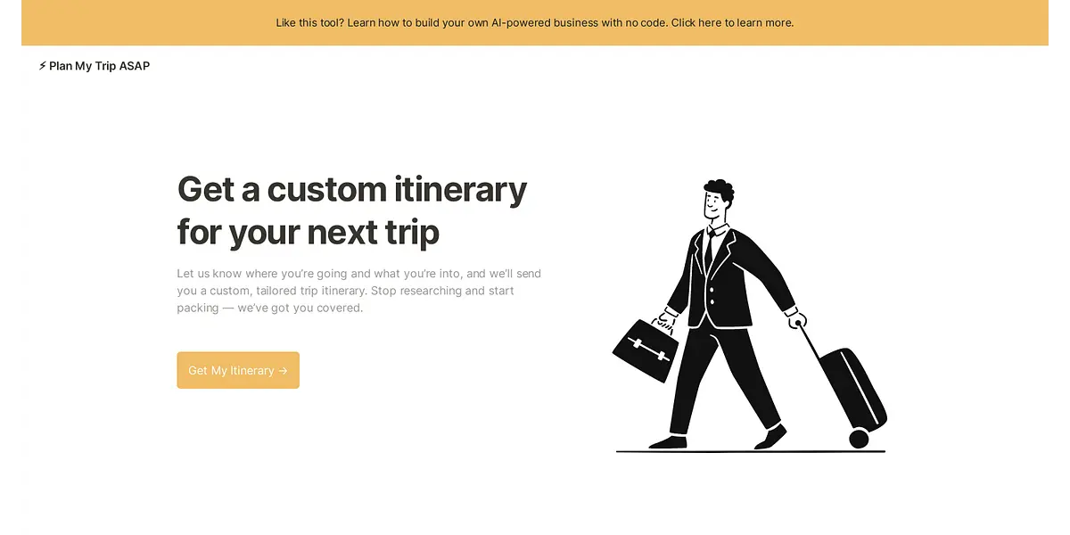Plan My Trip ASAP offers custom, tailored trip itineraries based on traveler preferences. Get a perfect itinerary for your next day trip, weekend getaway, or a long vacation with just a few clicks. Stop researching and start packing with AI-powered itineraries from Plan My Trip ASAP.