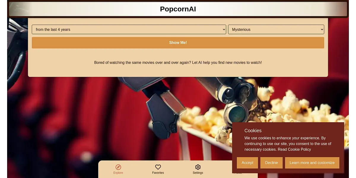 With years of experience under its belt, PopcornAI has been perfecting its algorithm to make sure that every recommendation is tailored to your specific taste. Whether you're in the mood for an action-packed adventure, a lighthearted comedy, a gripping thriller, or a heartwarming romantic film, PopcornAI has got you covered.
