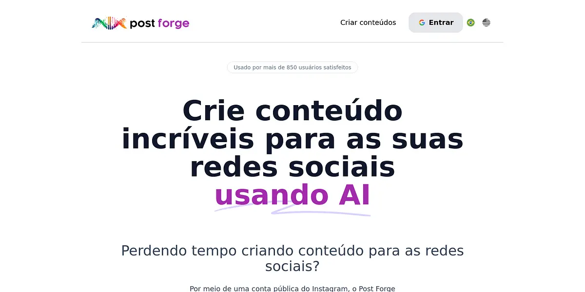 Post Forge is a game-changing AI-powered tool that allows you to create amazing content for your social media. If you're tired of wasting time creating content for social networks, Post Forge is here to make your life easier. With over 850 satisfied users, Post Forge is a reliable and efficient solution that creates incredible social media posts (content and image) for you, based on a public Instagram account.
