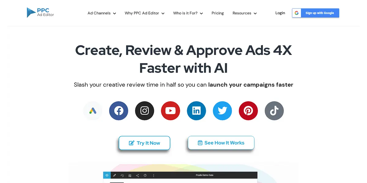 AdCelerator AI is built for all popular search and social media ad channels, including Google Responsive Search Ads, Facebook Ads, Instagram Ads, YouTube Ads, LinkedIn Ads, Twitter Ads, Pinterest Ads, and TikTok Ads. With AdCelerator AI, there's no more spreadsheet ad copy confusion, tedious manual work, or hours wasted on QAing ad copy.