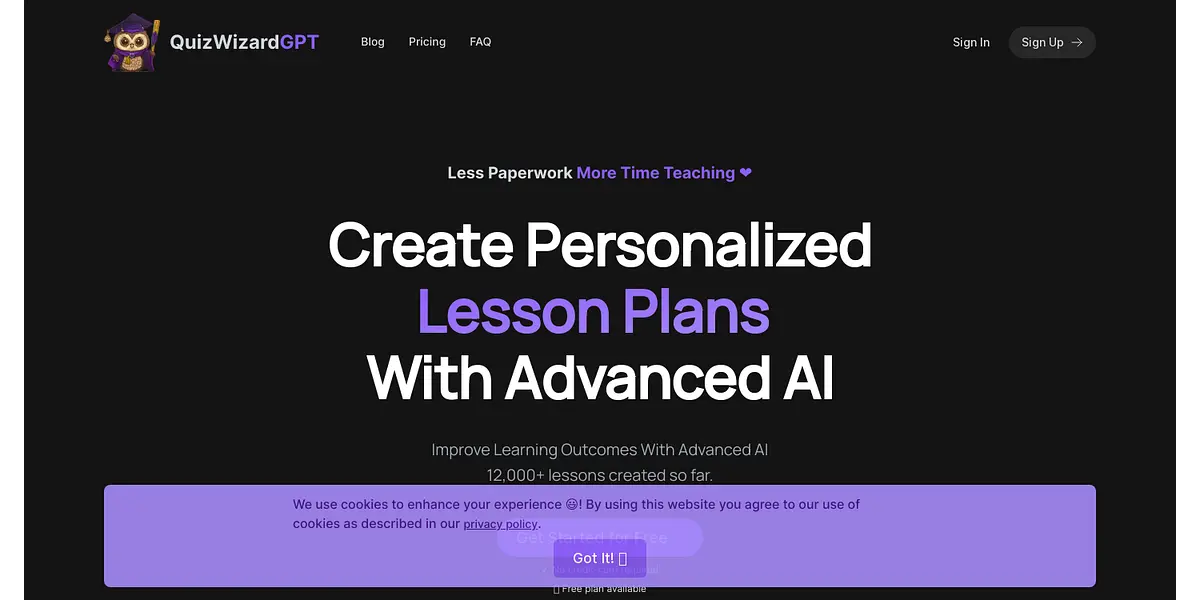 QuizWizardGPT is a cutting-edge platform that uses advanced AI to revolutionize the way teachers create personalized lesson plans and quizzes. With over 12,000 lessons created so far and more being added every day, QuizWizardGPT is quickly becoming the go-to tool for teachers looking to enhance student learning outcomes.