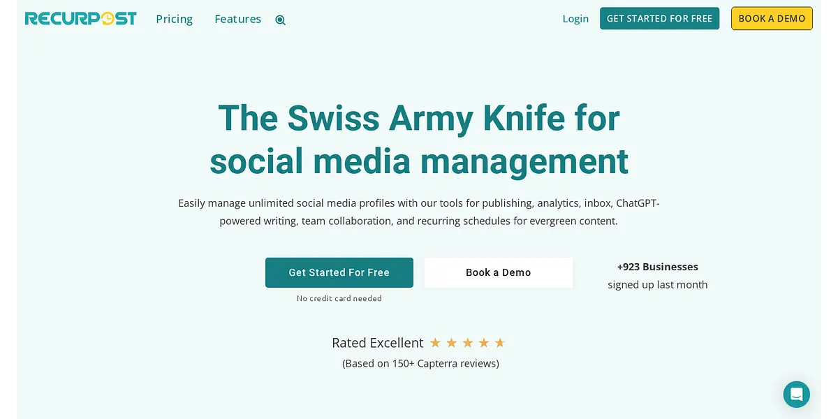 Are you struggling to juggle multiple social media accounts for your business? Do you find managing your social media time-consuming for you and your employees? If yes, then RecurPost is the all-in-one solution for you. RecurPost is the ultimate Swiss Army Knife of social media management, designed to let you easily manage unlimited social media profiles with our tools for publishing, analytics, inbox, ChatGPT-powered writing, team collaboration, and recurring schedules for evergreen content.