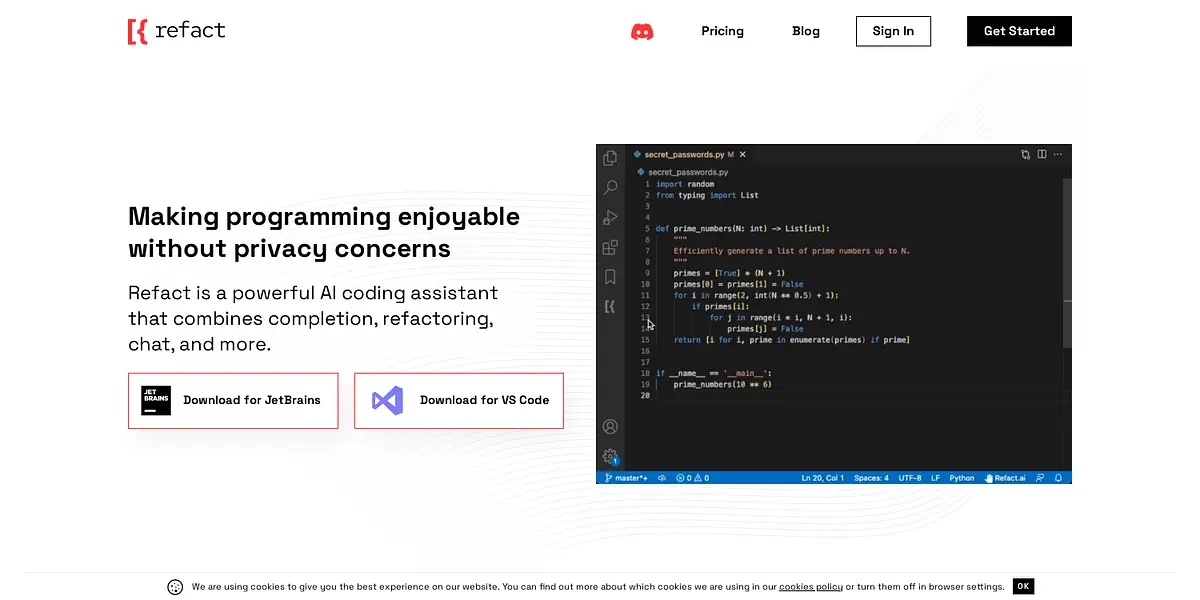 Refact is an AI-driven coding assistant that offers code completion, refactoring, chat, and more for different programming languages. With privacy as a top priority, Refact provides self-hosted solutions to protect confidential files and information.