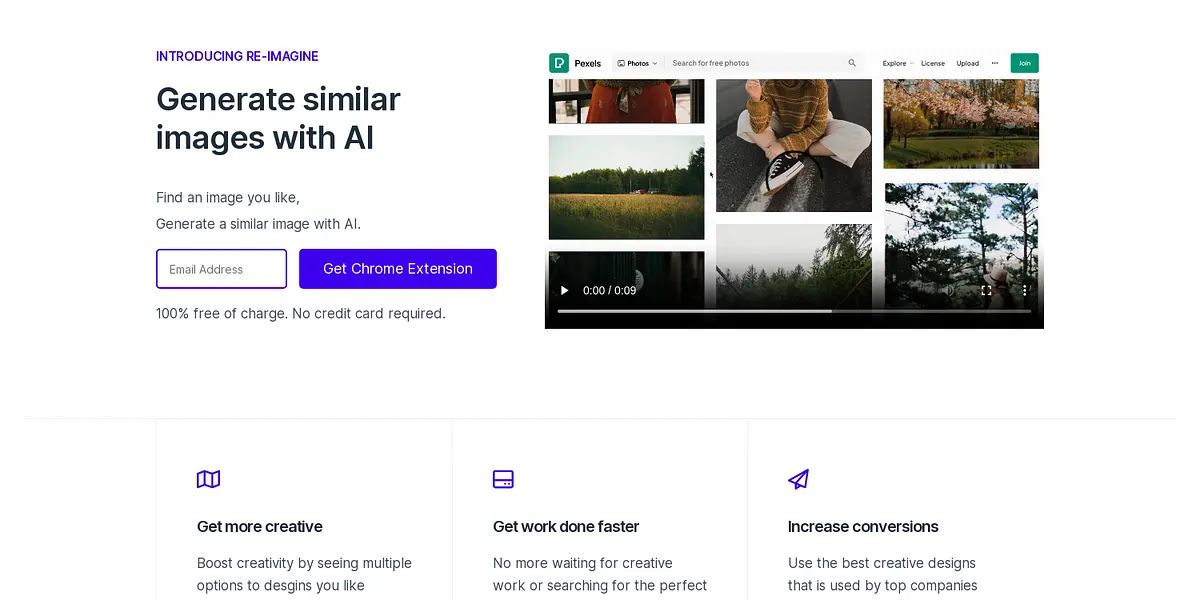 Re-imagine is an AI-powered image generation tool that allows users to find an image they like and generate similar ones with ease. With a free Chrome extension, users can boost their creativity by seeing multiple design options, save time by avoiding waiting for creative work or searching for the perfect stock image.