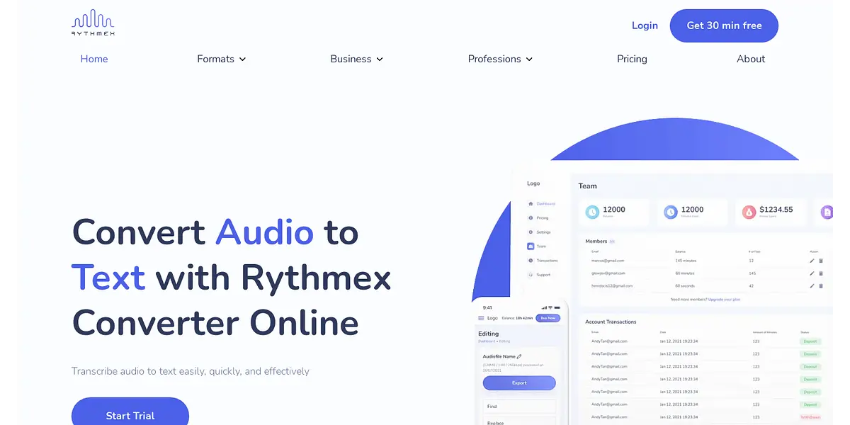 Overall, Rythmex is the simple, fast, and effective solution for audio to text transcription needs. Its user-friendly platform, range of acceptable formats, and editing tools make it the ideal choice for professionals and businesses in need of transcription services.