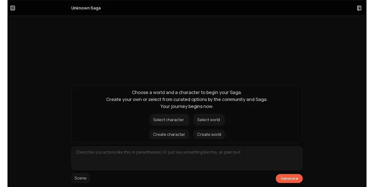 Start your own tale with Unknown Saga's world and character selection. Explore the curated options from the community and be ready for a captivating journey.
