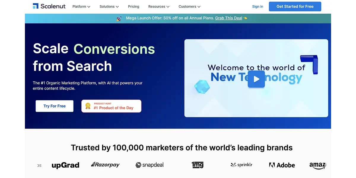 Scalenut is a content intelligence SaaS platform that helps you discover and create the most relevant content for your customers. It uses deep learning and AI to create the best content possible. Offers 7 day free trial.