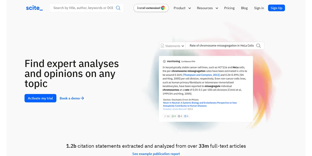 Scite is an innovative platform that allows users to easily discover and evaluate scientific articles with Smart Citations. It has revolutionized the way researchers, students, and evaluation professionals find relevant and credible scientific information. The platform extracts over 1.2 billion citation statements from more than 33 million full-text articles, making it one of the most comprehensive databases of scientific research.