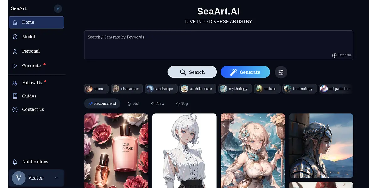 SeaArt is an online platform that offers an extensive range of artwork in various genres, including landscape, abstract, cityscapes, fashion, food, and many more. With its cutting-edge technology, the platform allows users to generate random and personalized artwork, making the experience at SeaArt truly unique.