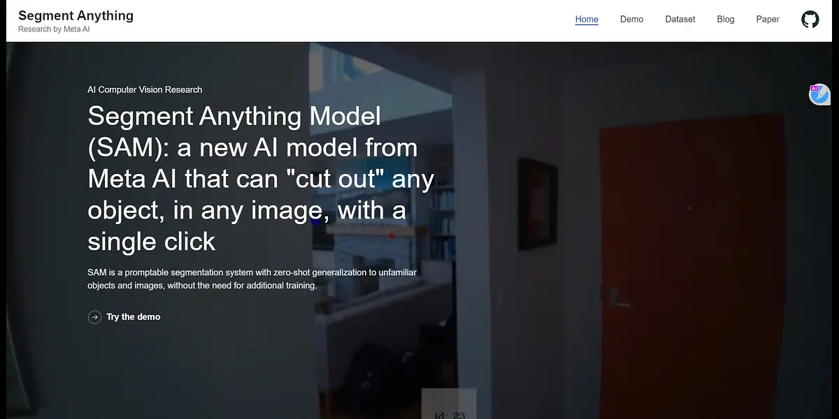 SAM from Meta AI is an AI model that can seamlessly "cut out" any object from an image with just a single click. It is a promotable segmentation system with zero-shot generalization, allowing the user to select and segment any object without additional training. The model is efficient and flexible, making it perfect for a wide range of segmentation tasks.