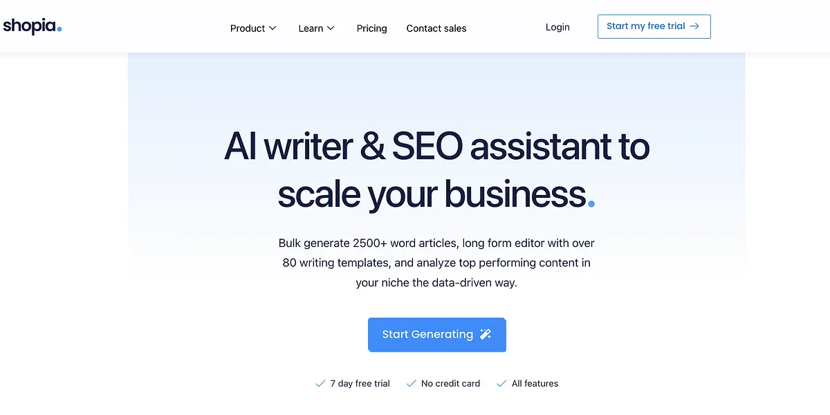 40+ AI writers and SEO assistant. Generate product descriptions, optimized ads and full blog articles & much more in seconds using the power of AI