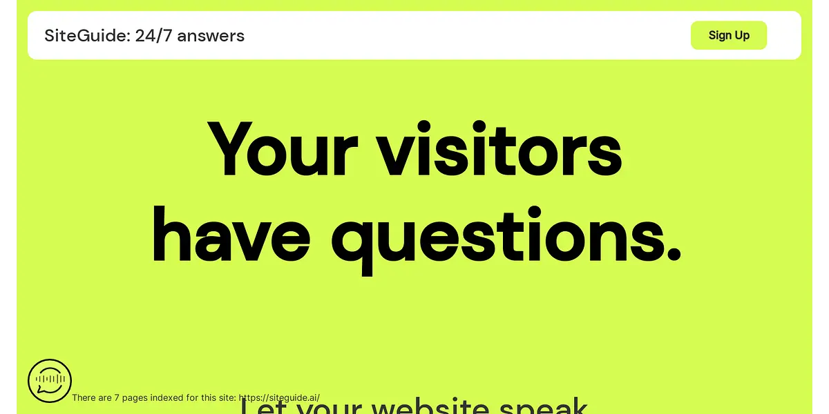 SiteGuide AI is revolutionizing the way websites interact with their visitors. Do you often find your website visitors leaving prematurely because they couldn't find the information they needed? SiteGuide can help. By simply integrating this innovative technology into your website, it instantly responds to your visitors' questions, providing them with accurate information and directing them to the right page.